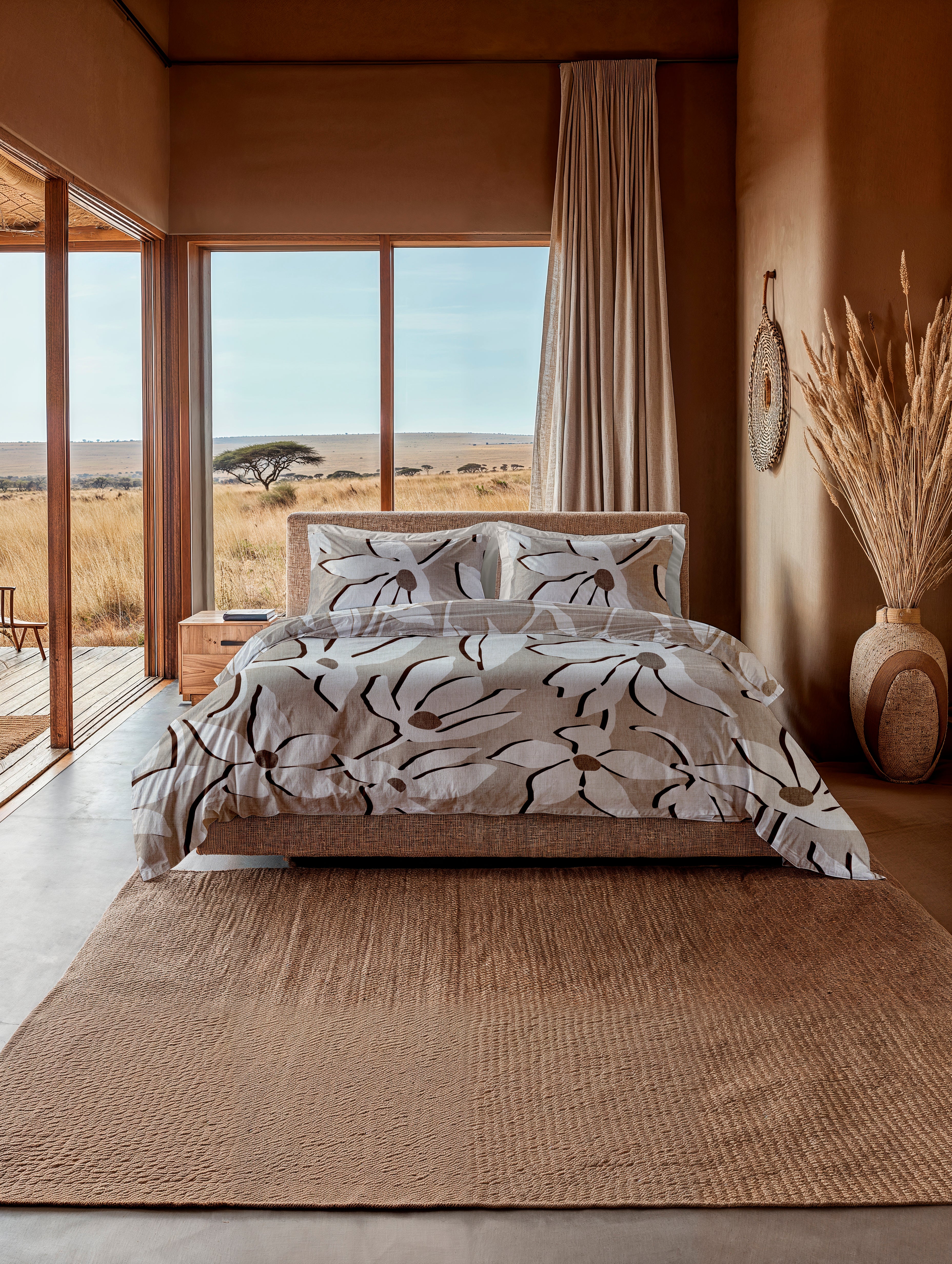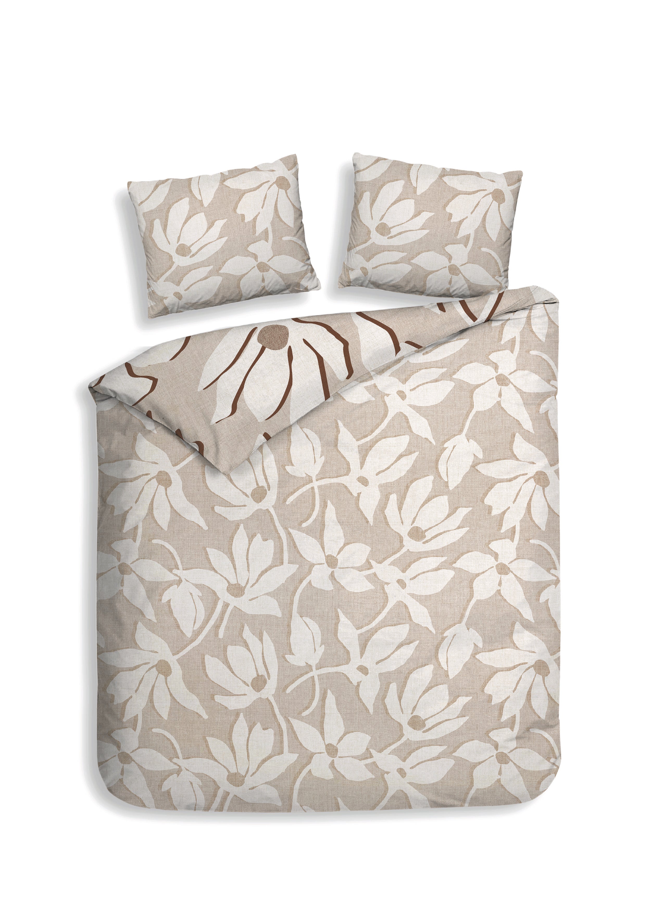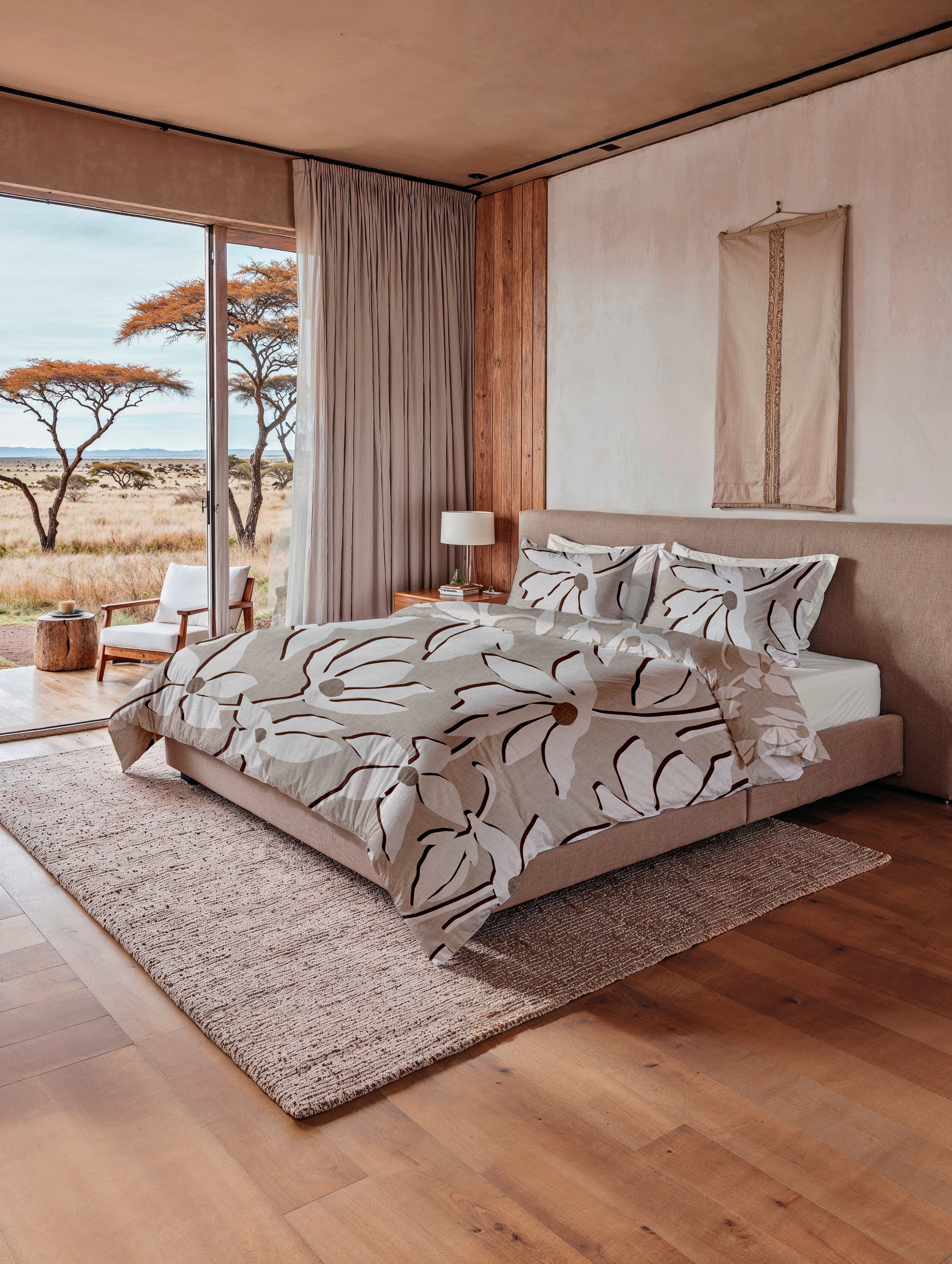 Dekbedovertrek Sanaa brengt de schoonheid van het natuurreservaat Masai Mara naar je slaapkamer. Grote bloemen in zachte, natuurlijke tinten geven een serene en toch levendige sfeer. Het 100% katoen-satijn voelt soepel en zacht aan en het dubbelzijdige dessin laat je eenvoudig van uitstraling wisselen. Geleverd met bijpassende kussenslopen voor een compleet geheel.
