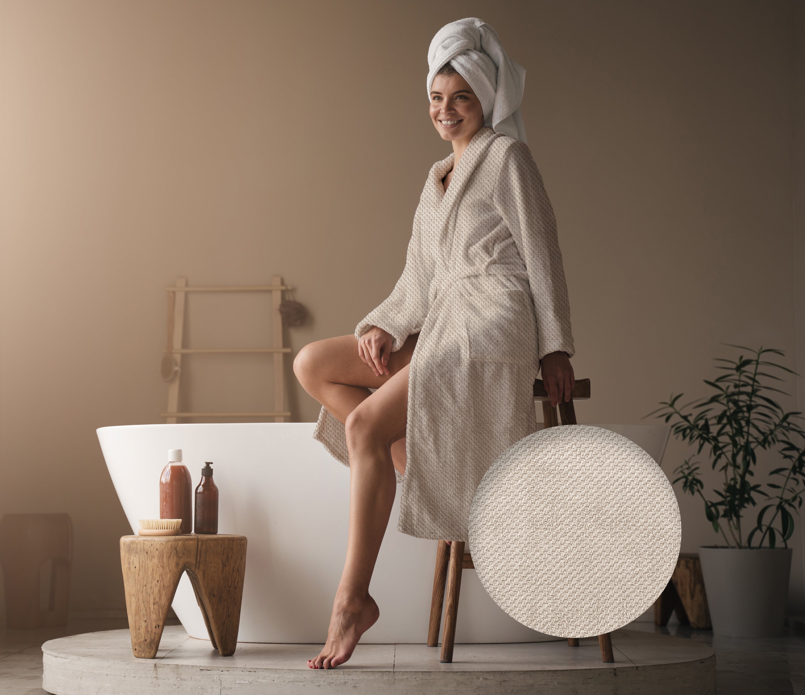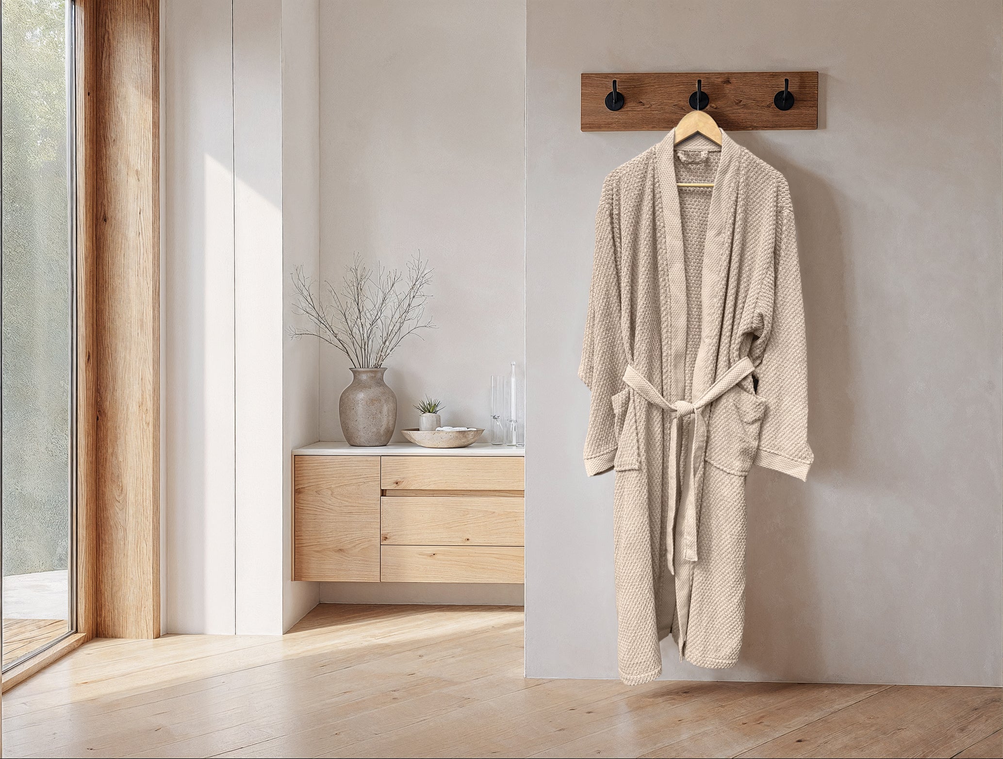 De Grant badjas van Heckettlane in zachte Cuban Sand nodigt uit om helemaal tot rust te komen. Gemaakt van 100% katoen voelt hij ademend en zacht aan op je huid, perfect om in te ontspannen na een warme douche of tijdens een rustige ochtend. Dankzij de comfortabele pasvorm en praktische zakken combineert deze badjas moeiteloos stijl met functionaliteit. Met Heckettlane geniet je elke dag van luxe en comfort.