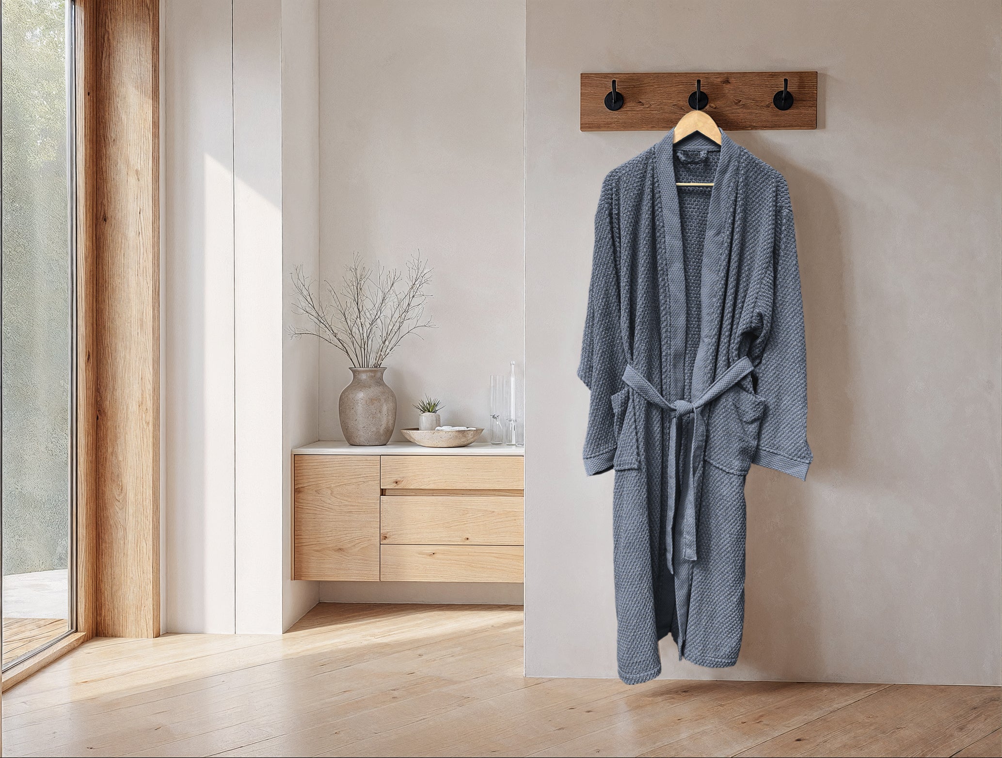 De Grant badjas van Heckettlane in Insignia Blue voelt heerlijk zacht en ademend aan dankzij 100% katoen. Perfect om in weg te kruipen na een drukke dag of een heerlijke douche. De comfortabele pasvorm en handige zakken maken deze badjas een stijlvolle en praktische keuze voor dagelijks comfort. Ervaar het luxe gevoel van Heckettlane bij elke draagbeurt.