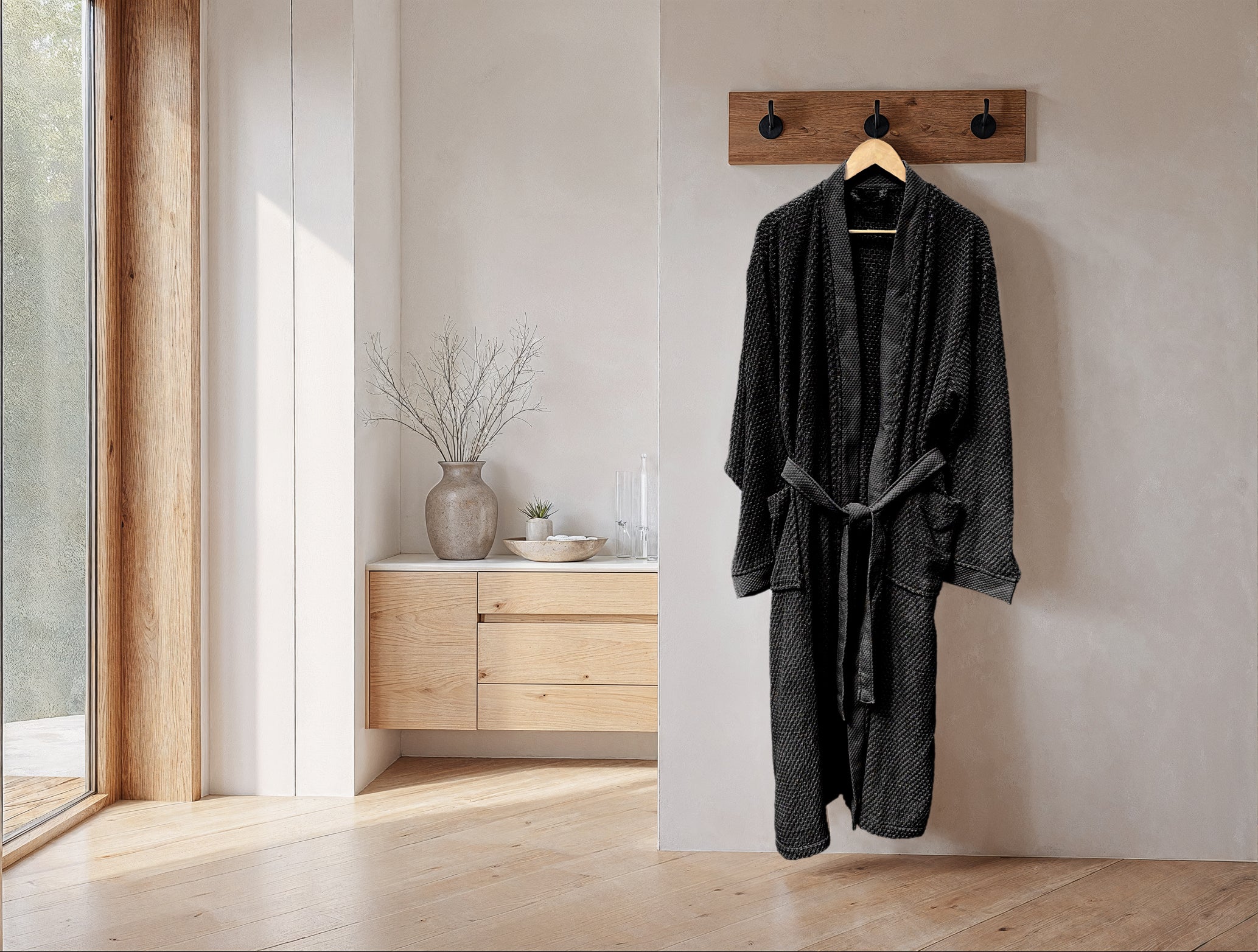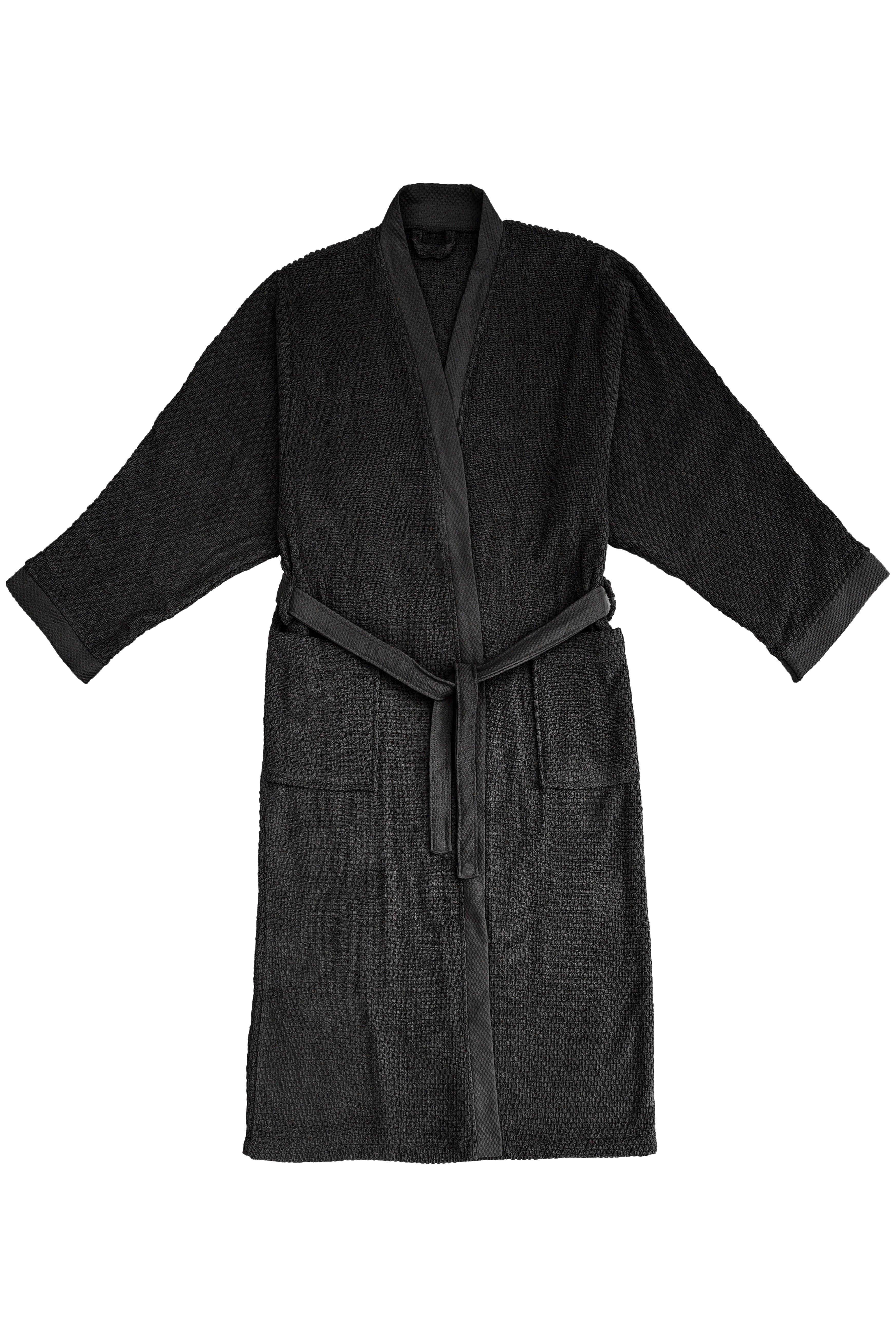 Met de Grant badjas van Heckettlane in klassiek Night Black geniet je van zacht en ademend 100% katoen dat je omhult met comfort. Deze badjas is perfect om te ontspannen na het douchen of tijdens rustige momenten thuis. Dankzij de comfortabele pasvorm en handige zakken combineert hij moeiteloos functionaliteit met stijl. Ervaar elke dag het luxe comfort dat Heckettlane biedt.