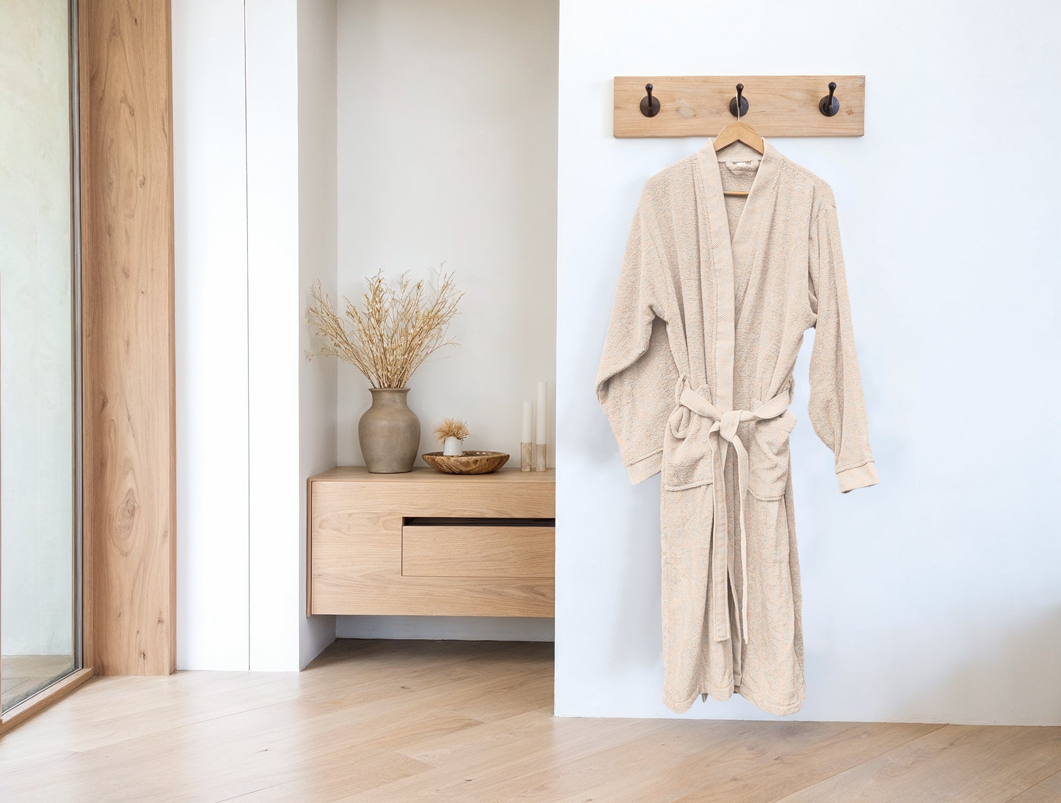 De Premium badjas van Heckettlane in de warme, beige kleur Cuban Sand is gemaakt van 100% hoogwaardig katoen. Deze zachte en ademende badjas biedt optimaal comfort en warmte, perfect voor ontspannen momenten thuis of na het douchen. Dankzij het luxe katoen voelt de badjas heerlijk zacht aan op de huid en behoudt hij zijn kwaliteit, wasbeurt na wasbeurt. Met een perfecte pasvorm en handige zakken is deze badjas een stijlvolle en praktische toevoeging aan je garderobe. Verwen jezelf met de Premium badjas van Heckettlane en ervaar dagelijks een gevoel van luxe en comfort.