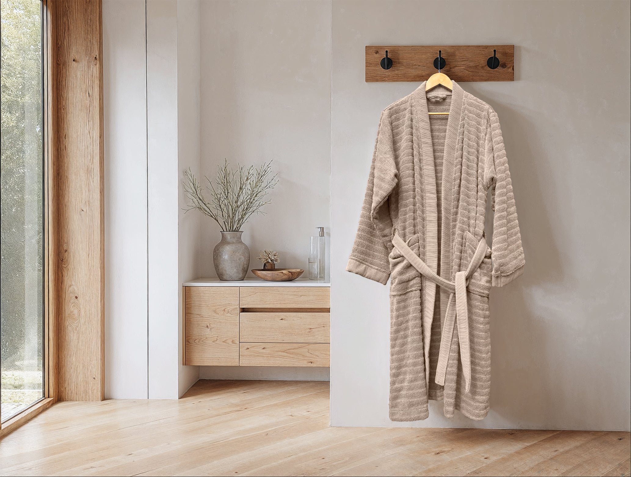 De Prestige badjas van Heckettlane in de warme tint Cuban Sand straalt rust en verfijning uit. Gemaakt van 100% katoen voelt hij heerlijk zacht en ademend aan, perfect voor een ontspannen moment na het douchen of bij het opstaan. Met zijn comfortabele pasvorm en doordachte details is dit een stijlvolle aanvulling op je dagelijkse routine.