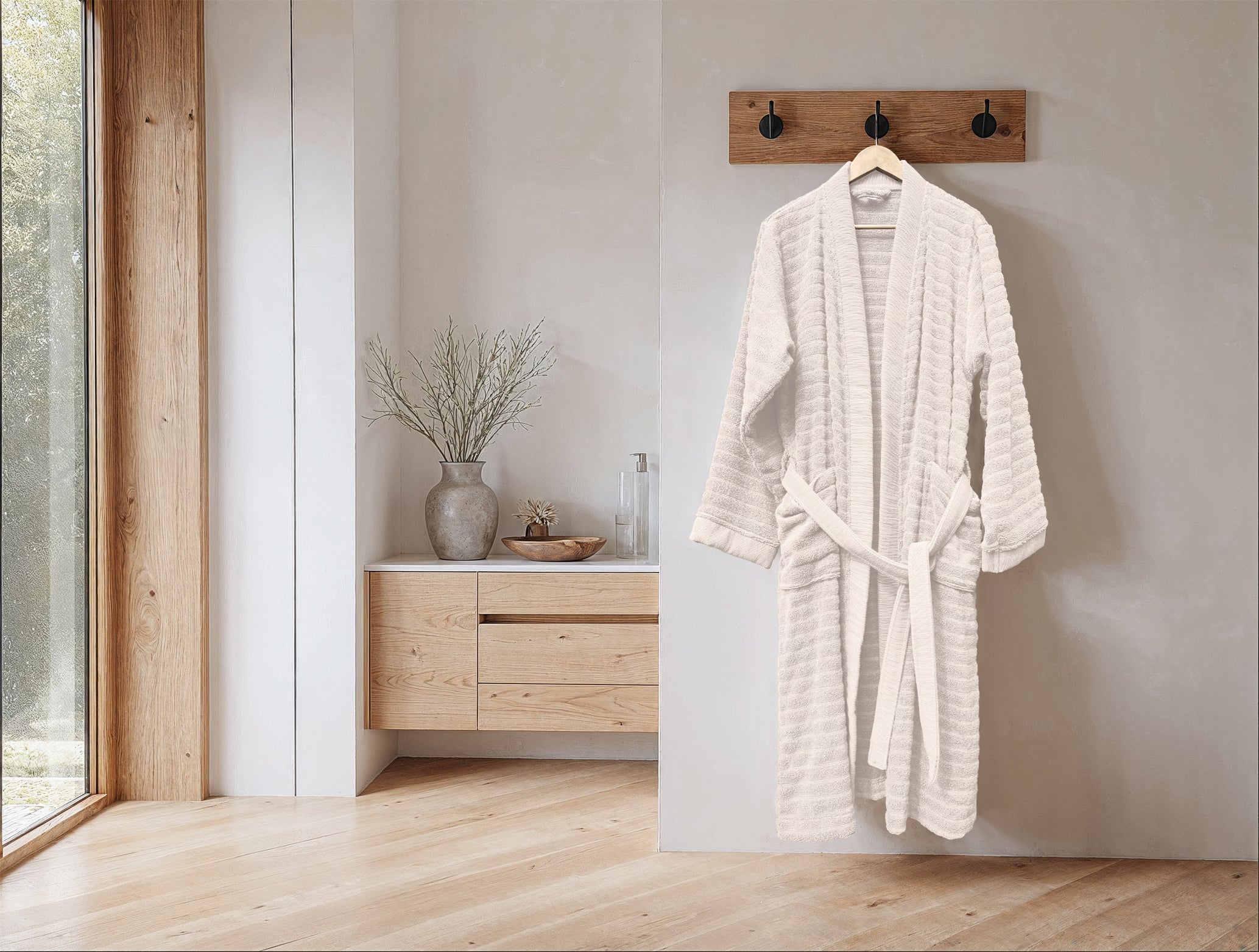 Omhul jezelf met het zachte comfort van de Prestige badjas van Heckettlane in tijdloos Off-White. Gemaakt van 100% katoen, voelt deze badjas ademend en heerlijk zacht aan op de huid. Perfect voor die ontspannende momenten thuis of na een fijne douche. De elegante kleur en doordachte pasvorm maken het een stijlvolle keuze die luxe en comfort moeiteloos combineert. Zo begin en eindig je je dag altijd ontspannen en goed verzorgd.