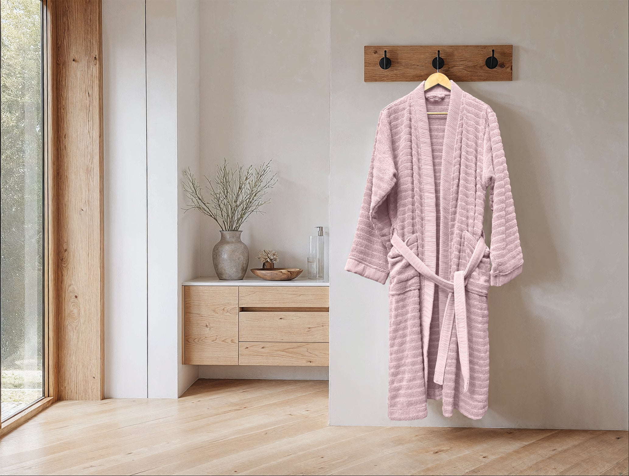 De Prestige badjas van Heckettlane in zachte Shady Pink omhult je met heerlijk comfort en warmte. Gemaakt van 100% katoen voelt hij zacht en ademend aan, perfect voor ontspannen momenten na het douchen of tijdens een rustige ochtend. De subtiele, warme kleur geeft een stijlvolle en serene uitstraling. Met deze badjas kies je voor luxe en comfort in één, elke dag weer.