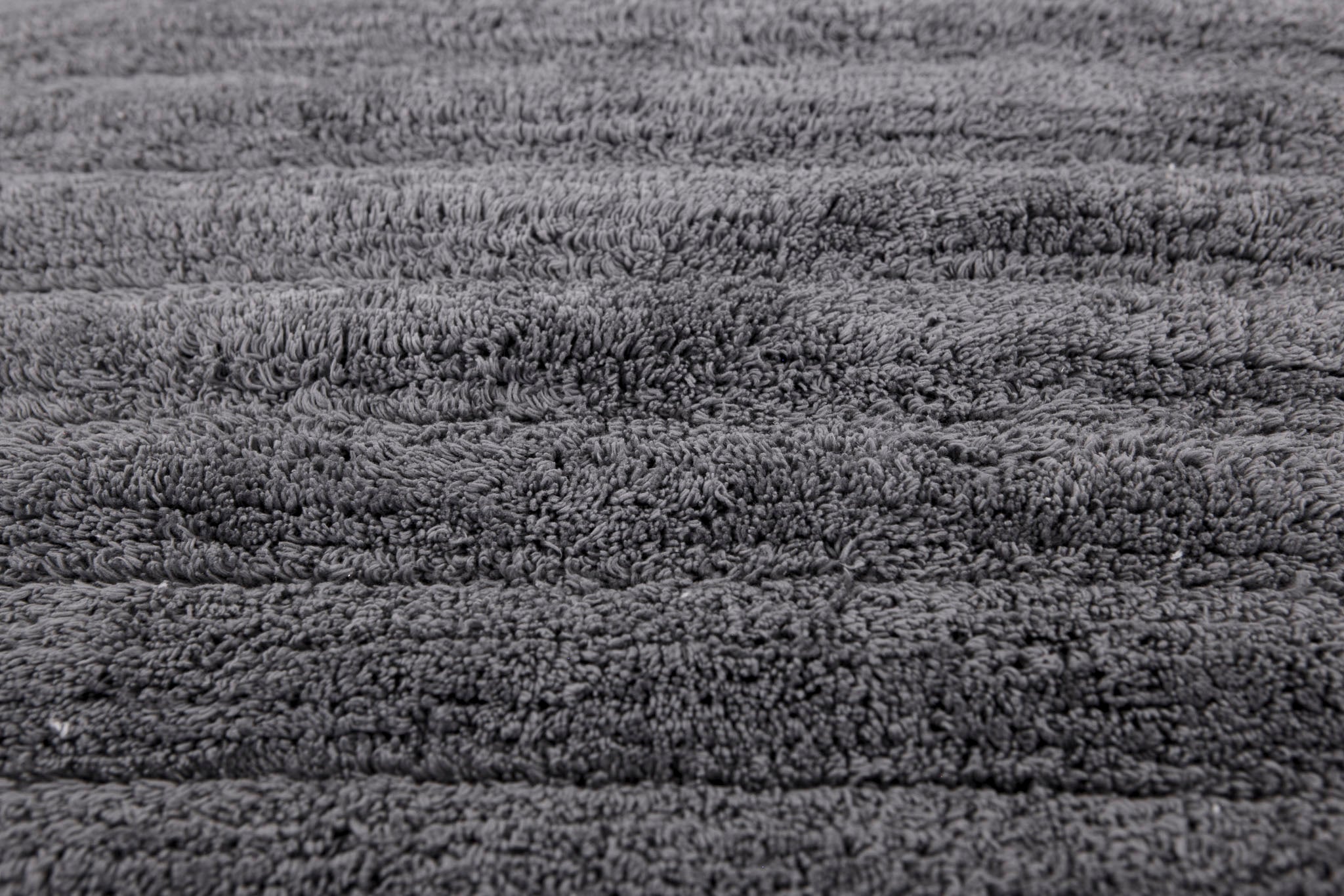 Breng wat stoers in je badkamer met deze antraciet kleurige badmat. De badmat is gemaakt van 100% katoen, wat ervoor zorgt dat jouw voeten altijd comfortabel en snel droog zijn. Het Vivienne patroon is effen en heeft een luxe hotel uitstraling. Ook heeft de badmat anti slip noppen om de kans op uitglijden te verkleinen.