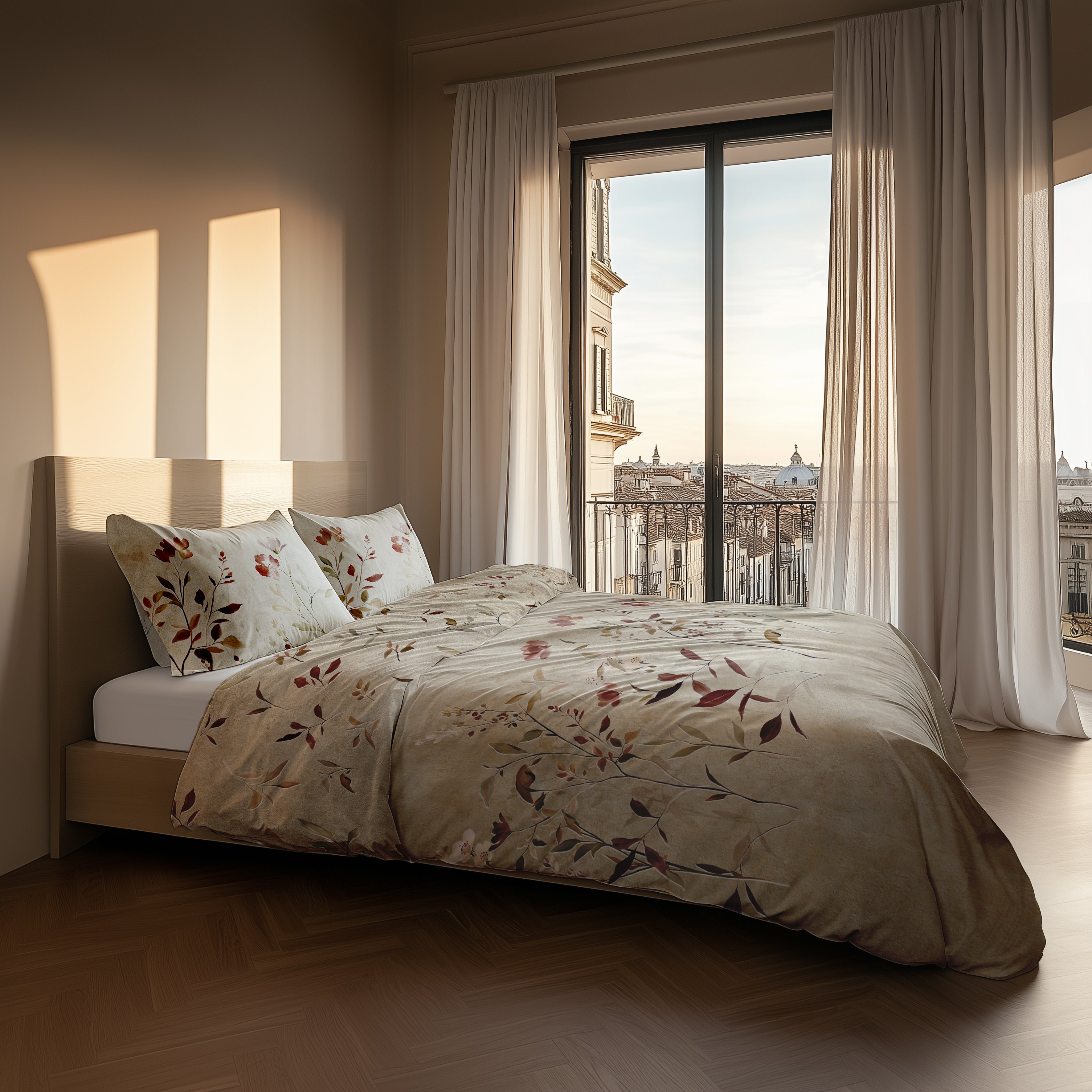 Het Caterina dekbedovertrek van Heckettlane omarmt je met een subtiele, warme bloemenprint op een zachte beige achtergrond. Gemaakt van 100% katoen-satijn voelt het heerlijk zacht en soepel aan, en biedt het ultiem comfort voor een rustige nachtrust. Dit tijdloze ontwerp creëert een sfeervolle en uitnodigende ambiance waarin je elke avond ontspannen kunt wegdromen.