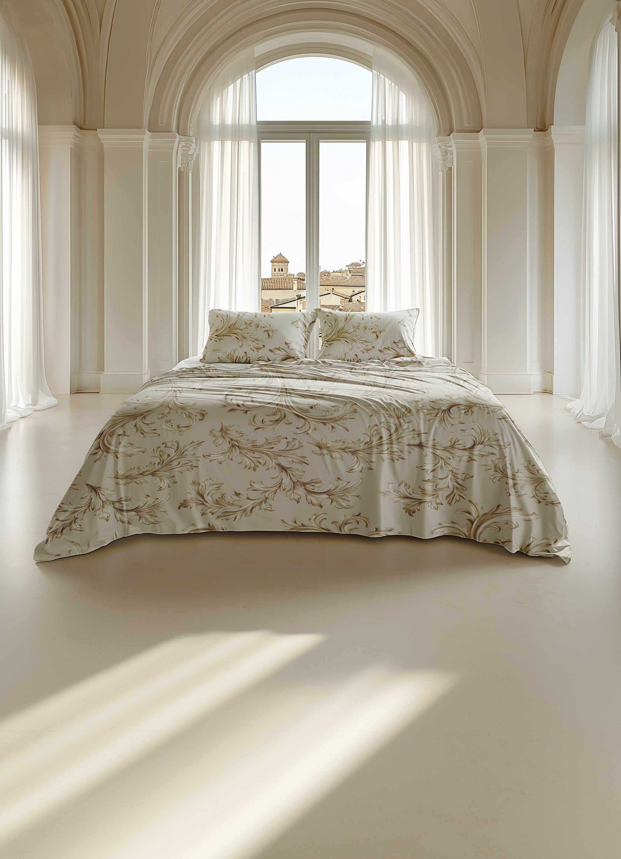 Het Lorenzo dekbedovertrek van Heckettlane omhult je in zachte, natuurlijke tinten met een beige achtergrond en een elegante beige print. Gemaakt van 100% katoen-satijn voelt het heerlijk soepel en zijdezacht aan, en zorgt het voor een luxe en ontspannen nachtrust. Dit tijdloze ontwerp ademt rust en verfijning, en nodigt je uit om iedere dag fris en uitgerust te beginnen.