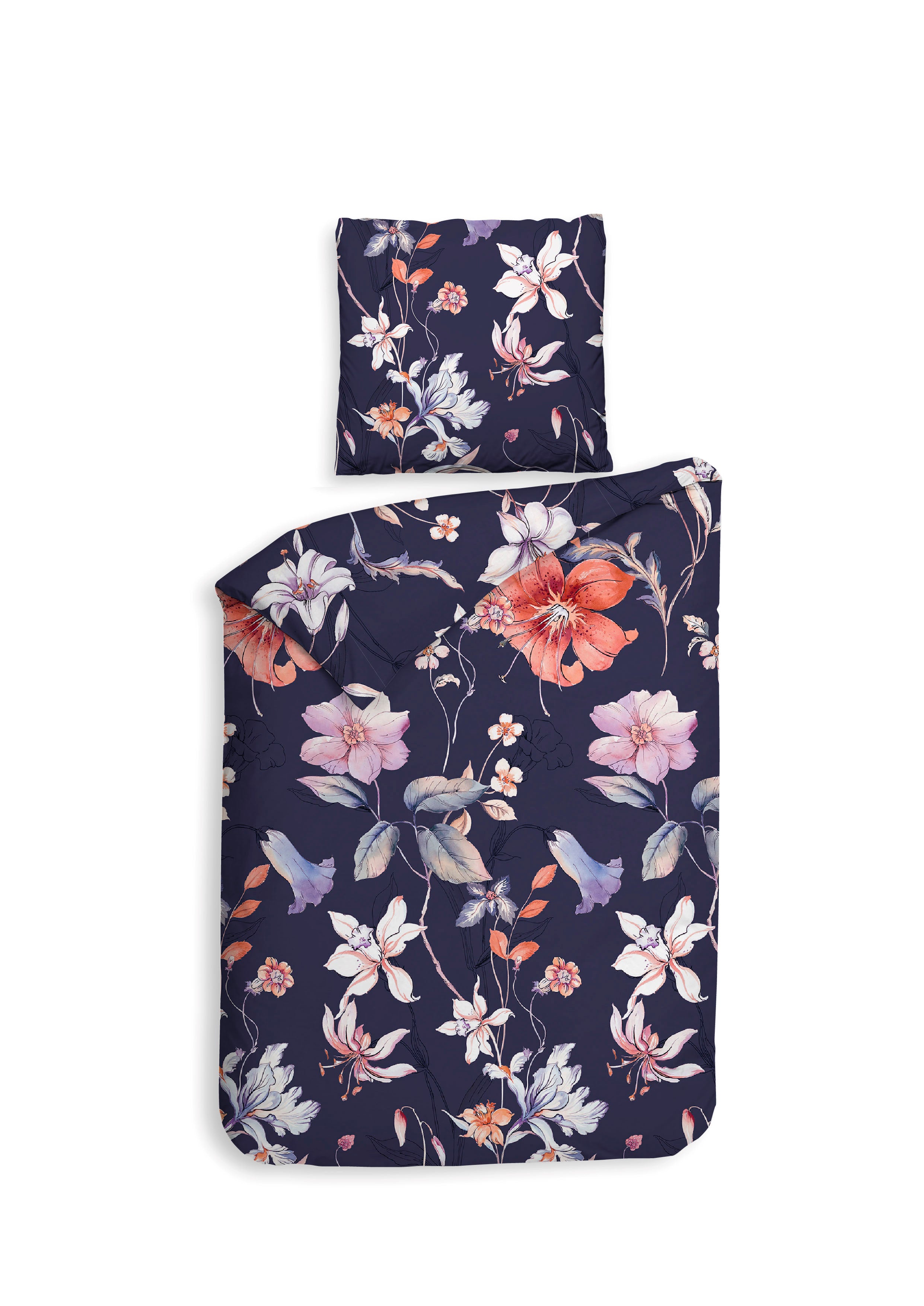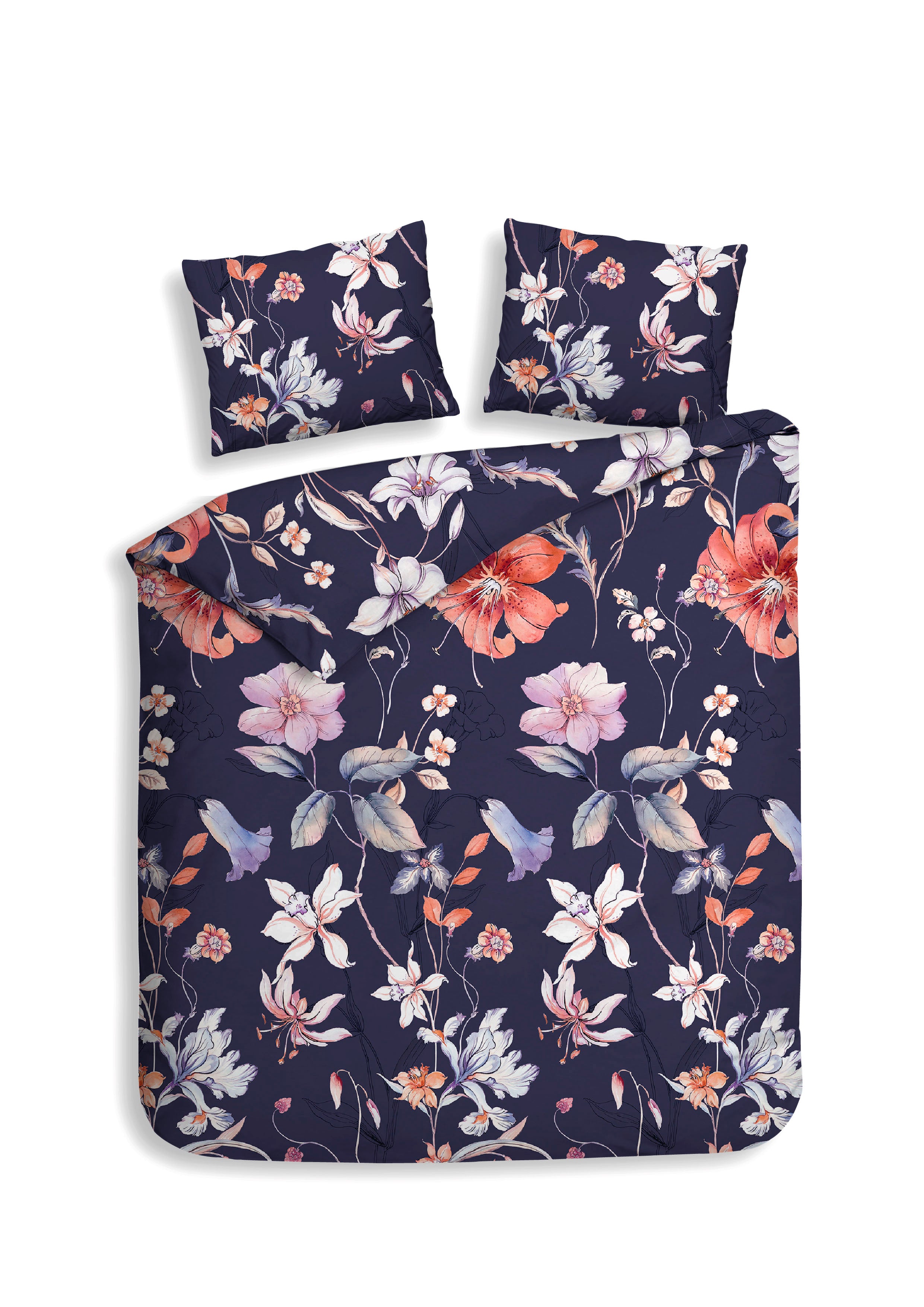 Het Suda dekbedovertrek van Heckettlane combineert een diepe paarsblauwe achtergrond met een prachtig bloemenpatroon in zachte roze tinten. Dit 100% katoen-flanel dekbedovertrek voelt heerlijk warm en zacht aan, perfect voor een knusse en comfortabele nachtrust in de koudere maanden. Met dit sfeervolle flanellen overtrek geef je je slaapkamer een warme, uitnodigende uitstraling en geniet je elke avond van optimaal slaapcomfort.