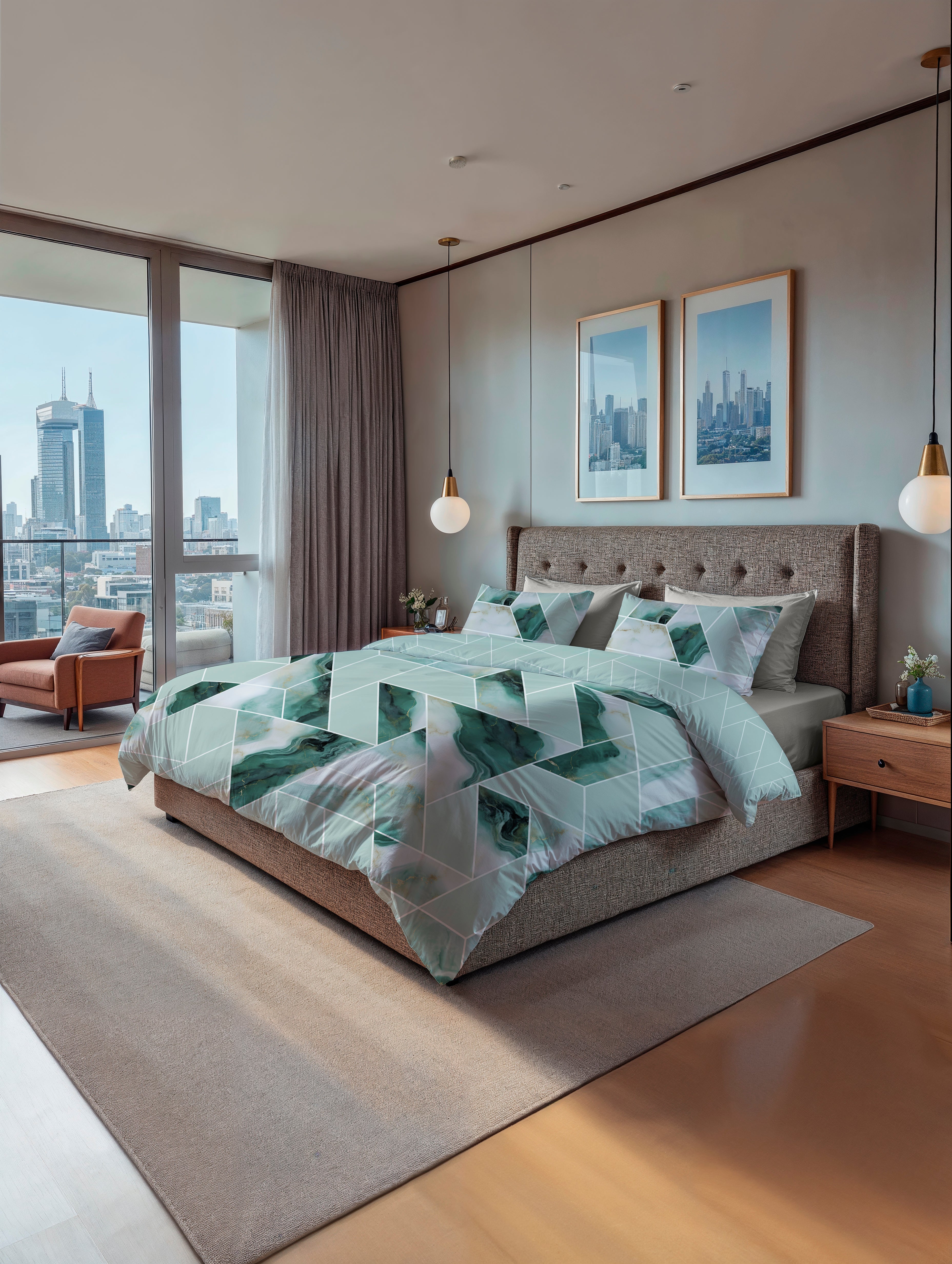 Dekbedovertrek Yarra heeft een frisse, grafische uitstraling in een diepe groentint. Het dessin is dubbelzijdig, waardoor je makkelijk de sfeer in je slaapkamer kunt veranderen. Gemaakt van 100% katoen-satijn, voelt het heerlijk zacht en soepel aan, ideaal om onder te kruipen na een lange dag. Het ontwerp is geïnspireerd op Melbourne in Australië, een stad vol levendige straten en groene parken, en brengt dat lichte, natuurlijke gevoel bij je thuis. Het overtrek wordt geleverd met bijpassende kussenslopen voor een complete, verzorgde look.