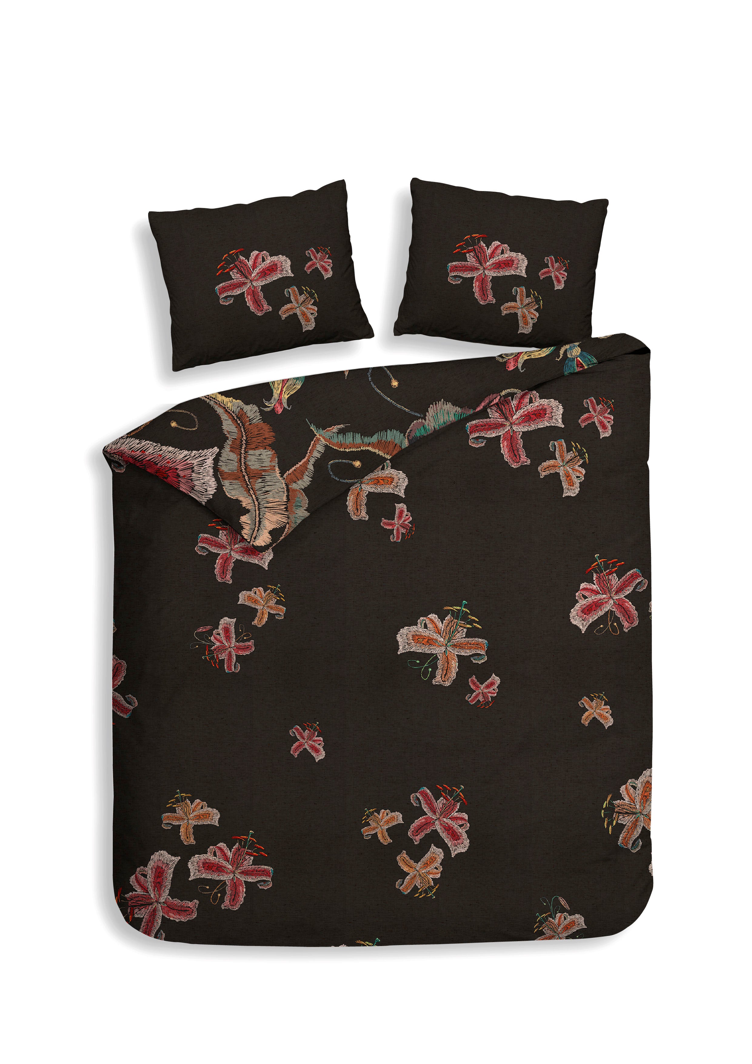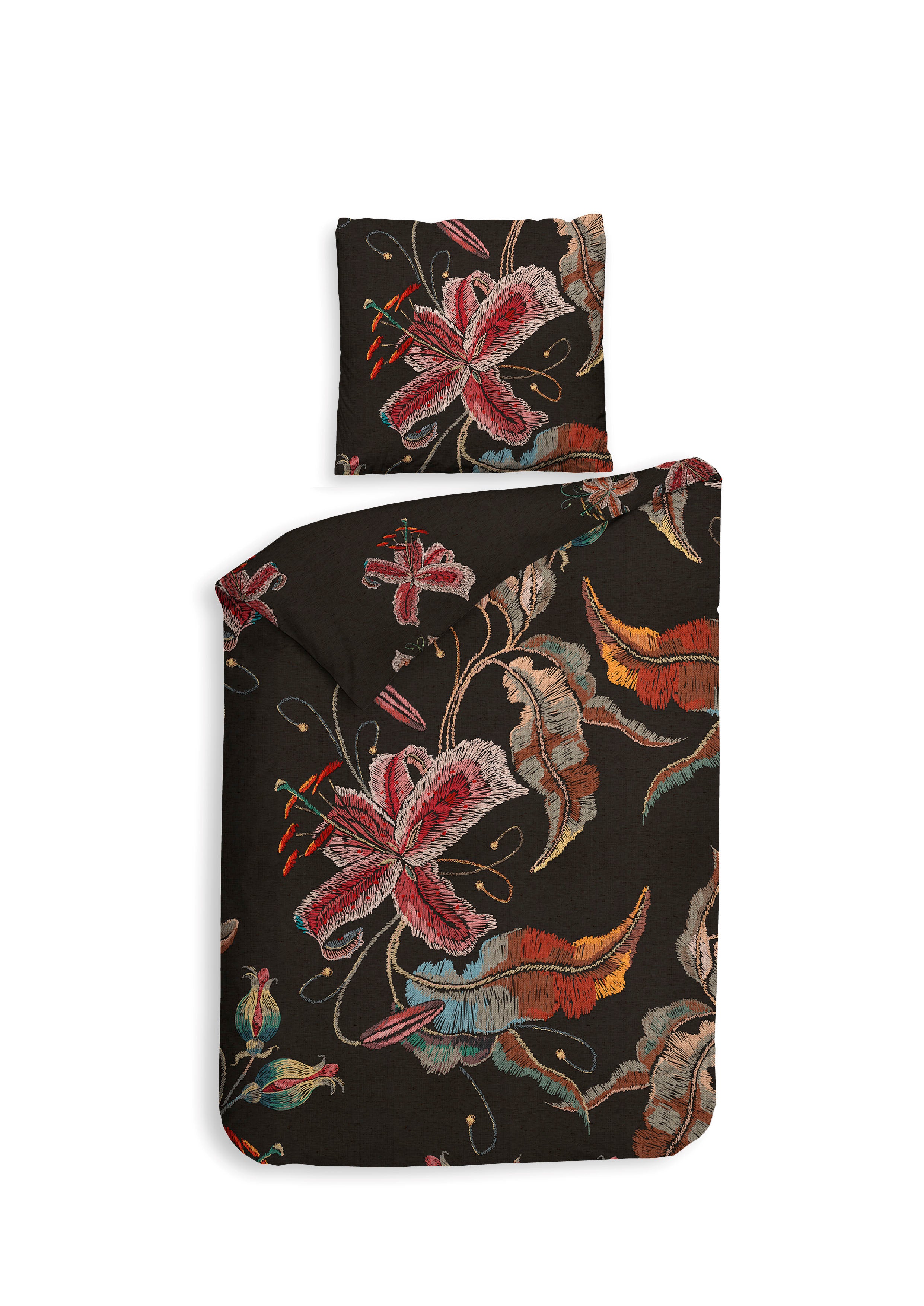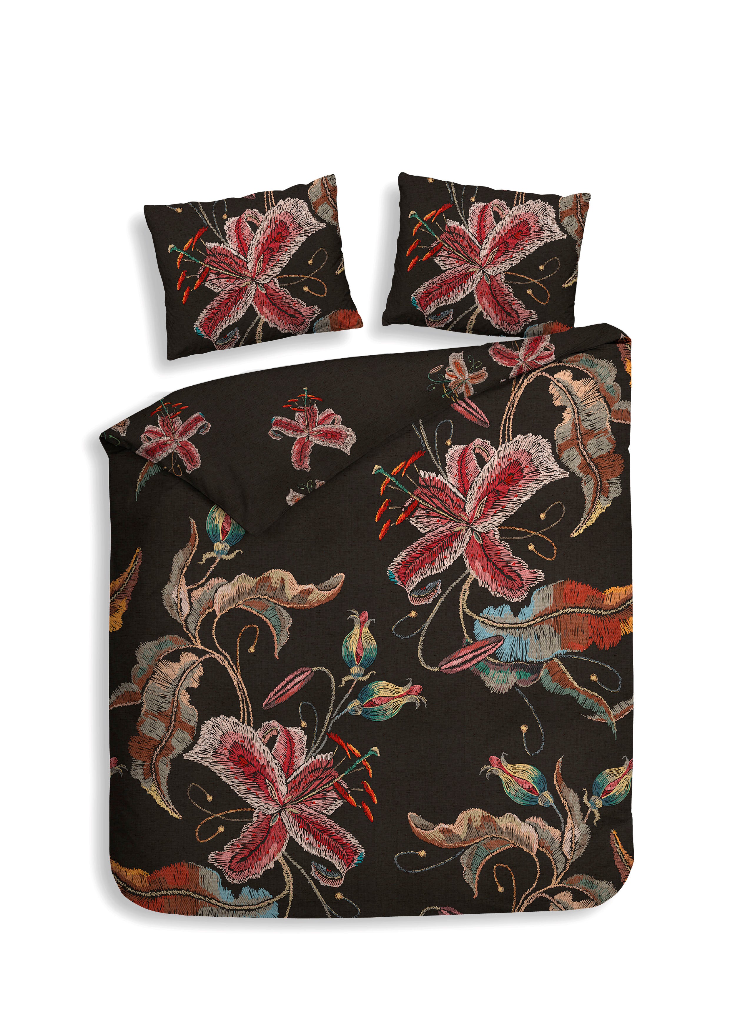 Het Zia dekbedovertrek van Heckettlane straalt warmte en elegantie uit met een donkere achtergrond die prachtig contrasteert met bloemen in warme, rijke kleuren. Gemaakt van 100% katoen-satijn voelt het heerlijk zacht aan en zorgt het voor een comfortabele, luxe nachtrust. Met dit opvallende en stijlvolle ontwerp geef je je slaapkamer een sfeervolle en uitnodigende uitstraling.