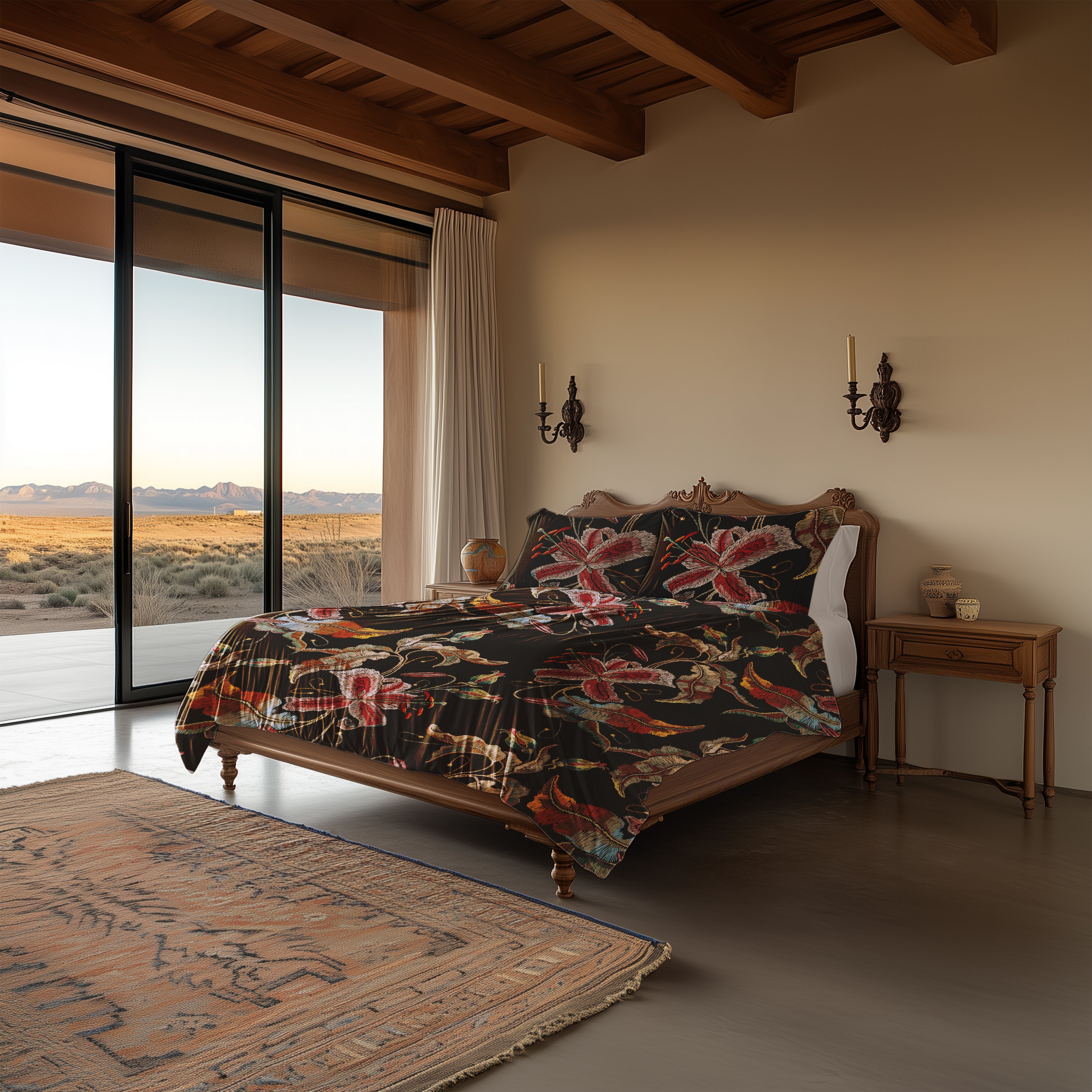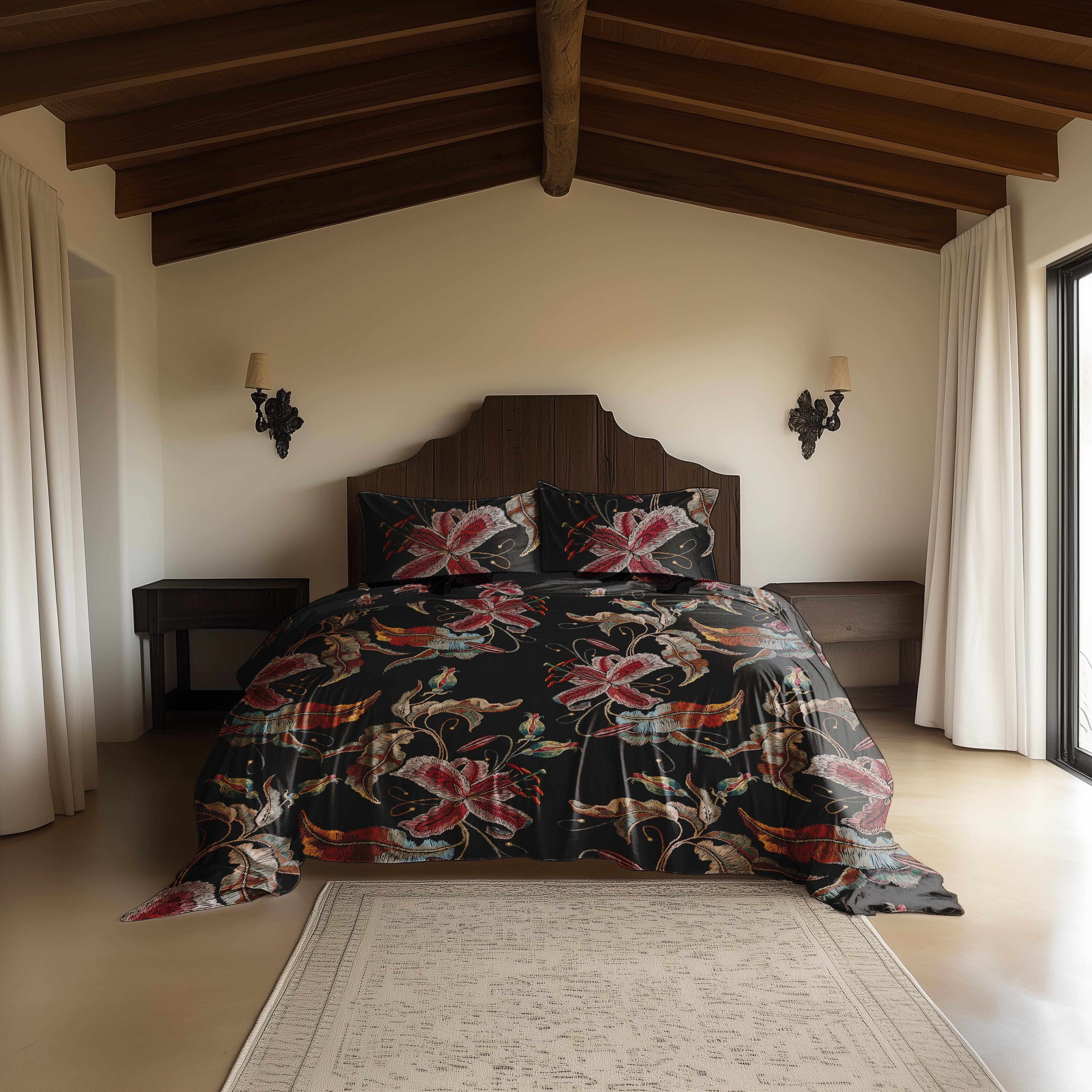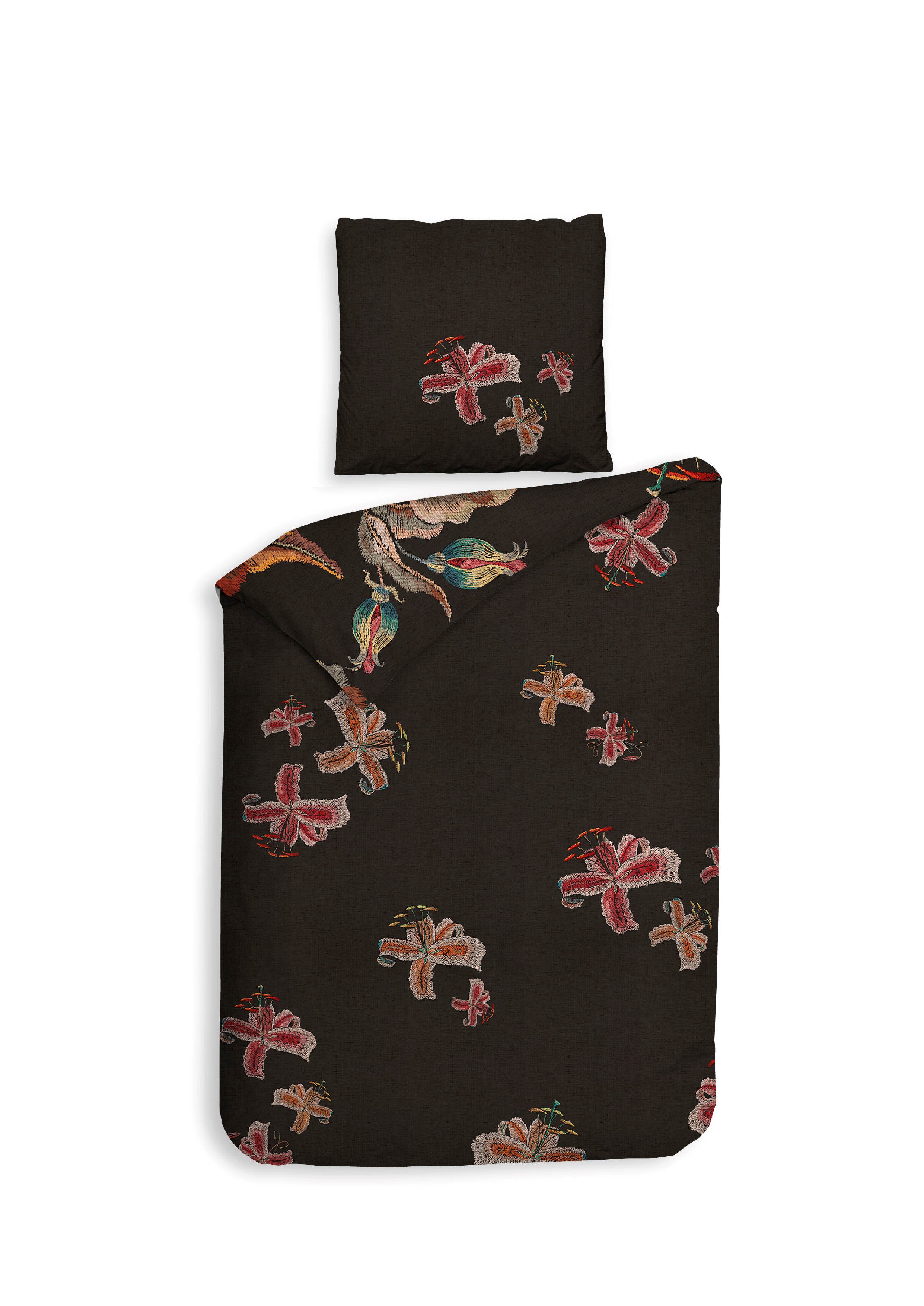 Het Zia dekbedovertrek van Heckettlane straalt warmte en elegantie uit met een donkere achtergrond die prachtig contrasteert met bloemen in warme, rijke kleuren. Gemaakt van 100% katoen-satijn voelt het heerlijk zacht aan en zorgt het voor een comfortabele, luxe nachtrust. Met dit opvallende en stijlvolle ontwerp geef je je slaapkamer een sfeervolle en uitnodigende uitstraling.